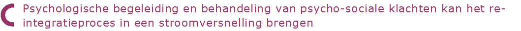 2) Direct aansluitend verzorgen wij het behandeltraject van psychologische, psychosociale en arbeidsgerelateerde klachten.